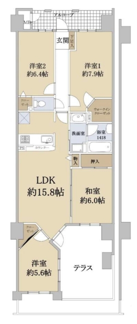| バルコニー面積 | 16.62㎡ |